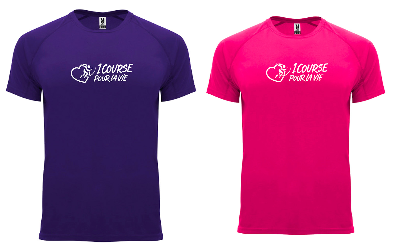 Lors de votre inscription en ligne, vous avez la possibilité de commander le T-Shirt "Une course pour la Vie" au tarif de 15€.